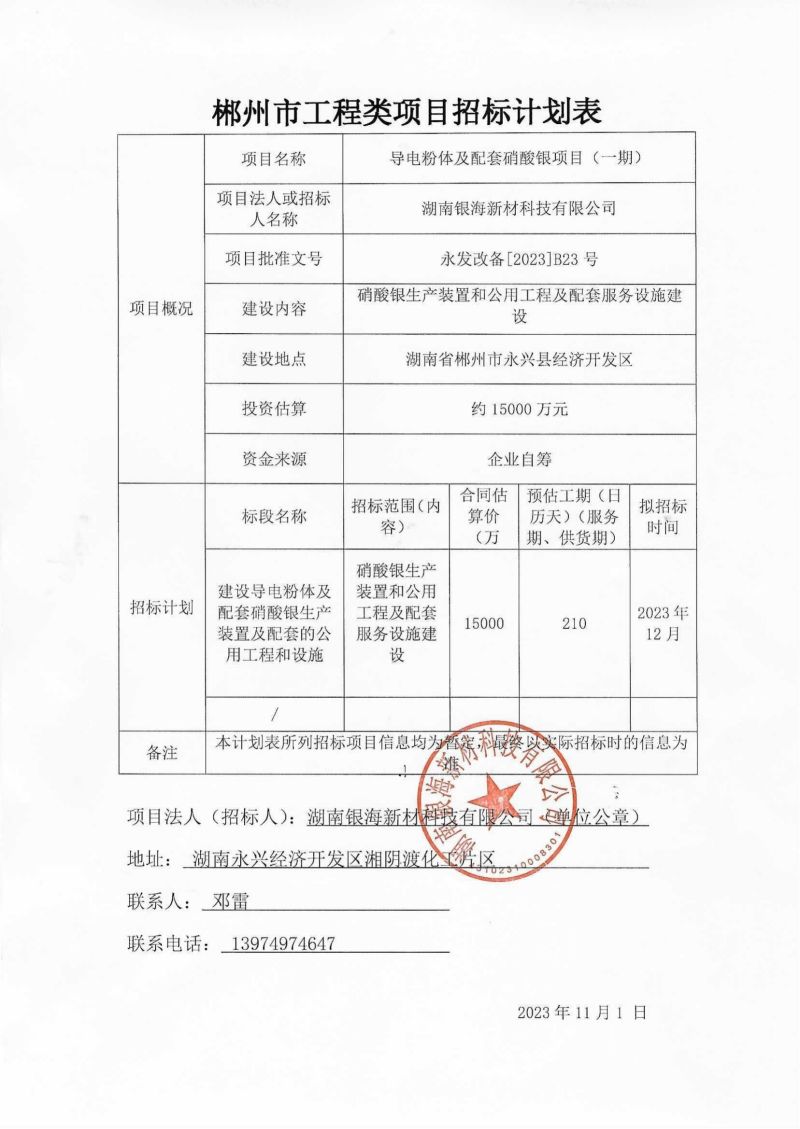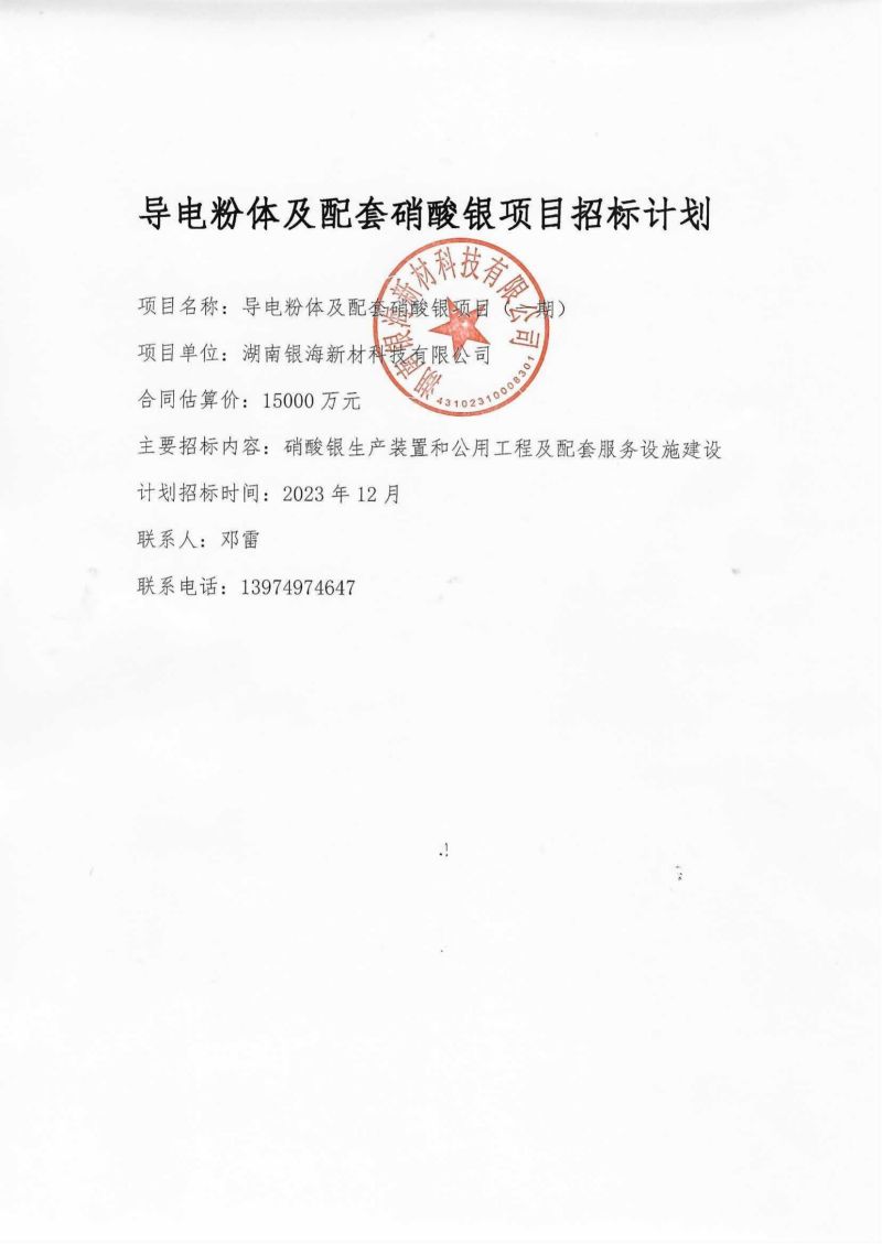 导电粉体及配套硝酸银项目(一期)招标预公告