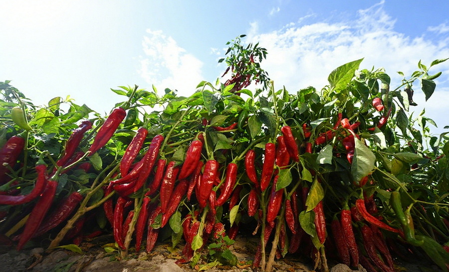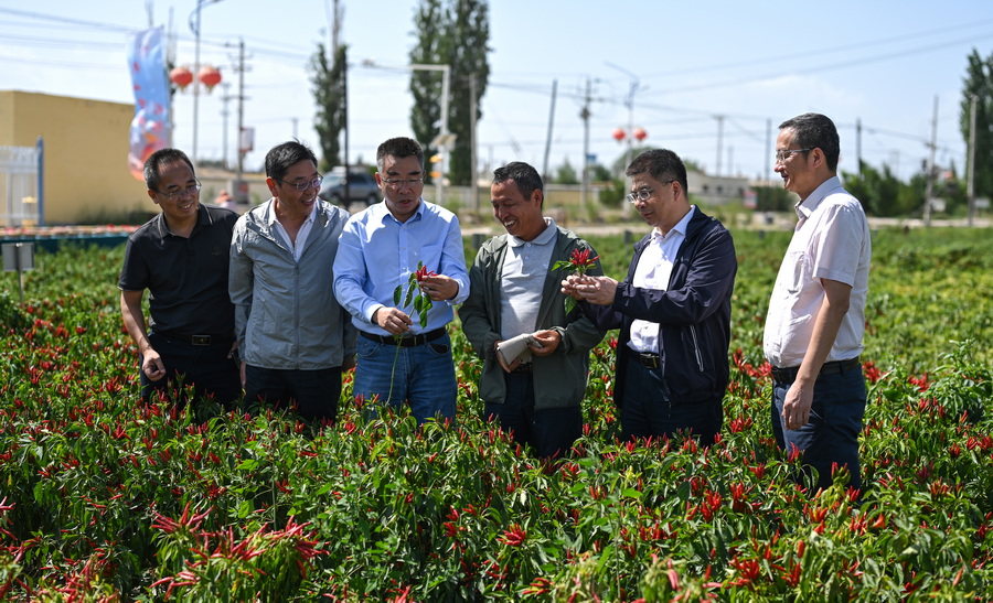 峰会现场,兴蔬种业公司展示了丰硕的产业成果,在焉耆县五号渠乡头号渠村,万亩戈壁辣椒种植基地集中示范成果斐然,邹学校团队新培育的色素椒新品种“兴蔬红186”长势旺盛。