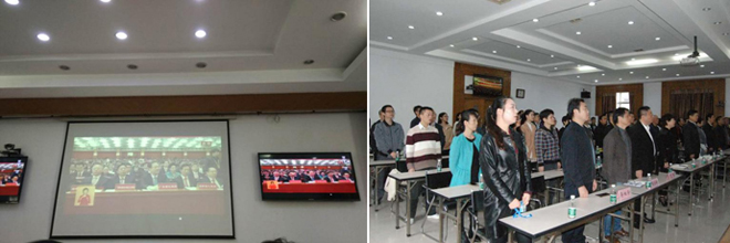 9时正,随着李克强总理宣布大会开始,我集团公司主、分会场与会人员全体起立,怀着激昂和真挚的情感同唱国歌,共同缅怀老一辈革命家。随后,与会人员仔细聆听了习近平同志所作的报告,大家聚精会神、专心聆听,不时提笔记录报告内容和内心感想,整个会场洋溢着浓厚的学习氛围,听到激动人心处都情不自禁地鼓掌,为我们伟大的祖国、伟大的中国共产党而骄傲和自豪。大家纷纷表示要不忘初心,牢记使命,坚决维护中央决定,坚决同以习近平同志为核心的党中央保持高度一致,始终坚持党的领导,听党的话,以更加饱满的精神状态,更加扎实的工作作风努力工作,为实现美丽中国梦贡献个人力量。