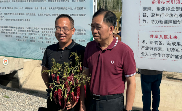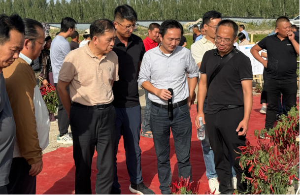 天山突兀拔地起,雪光烛天天尺咫。2024年9月19日,带着丰收的喜悦,湖南兴蔬种业辣椒品种新疆现场观摩会隆重召开。本次观摩会由湖南兴蔬种业有限公司与湖南省蔬菜研究所联合主办。中国工程院院士、国家特色蔬菜产业技术体系首席科学家、湖南农业大学校长邹学校,湖南省蔬菜产业技术体系首席科学家戴雄泽,国家特色蔬菜产业体系岗位科学家刘峰,新疆生产建设兵团第二师22团党委书记、政委张鑫,湖南省蔬菜研究所所长李雪峰,湖南兴蔬种业有限公司董事长邹家华莅临现场,共同见证辣椒产业的新篇章。