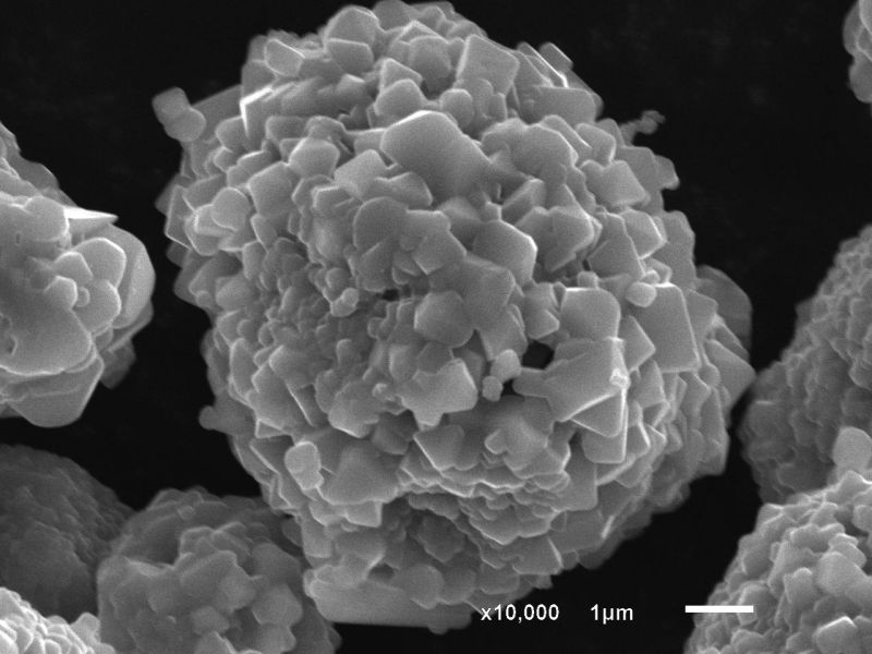 (1)产品颗粒呈完整规则尖晶石相,粒度分布呈正态分布,材料加工性能优越。