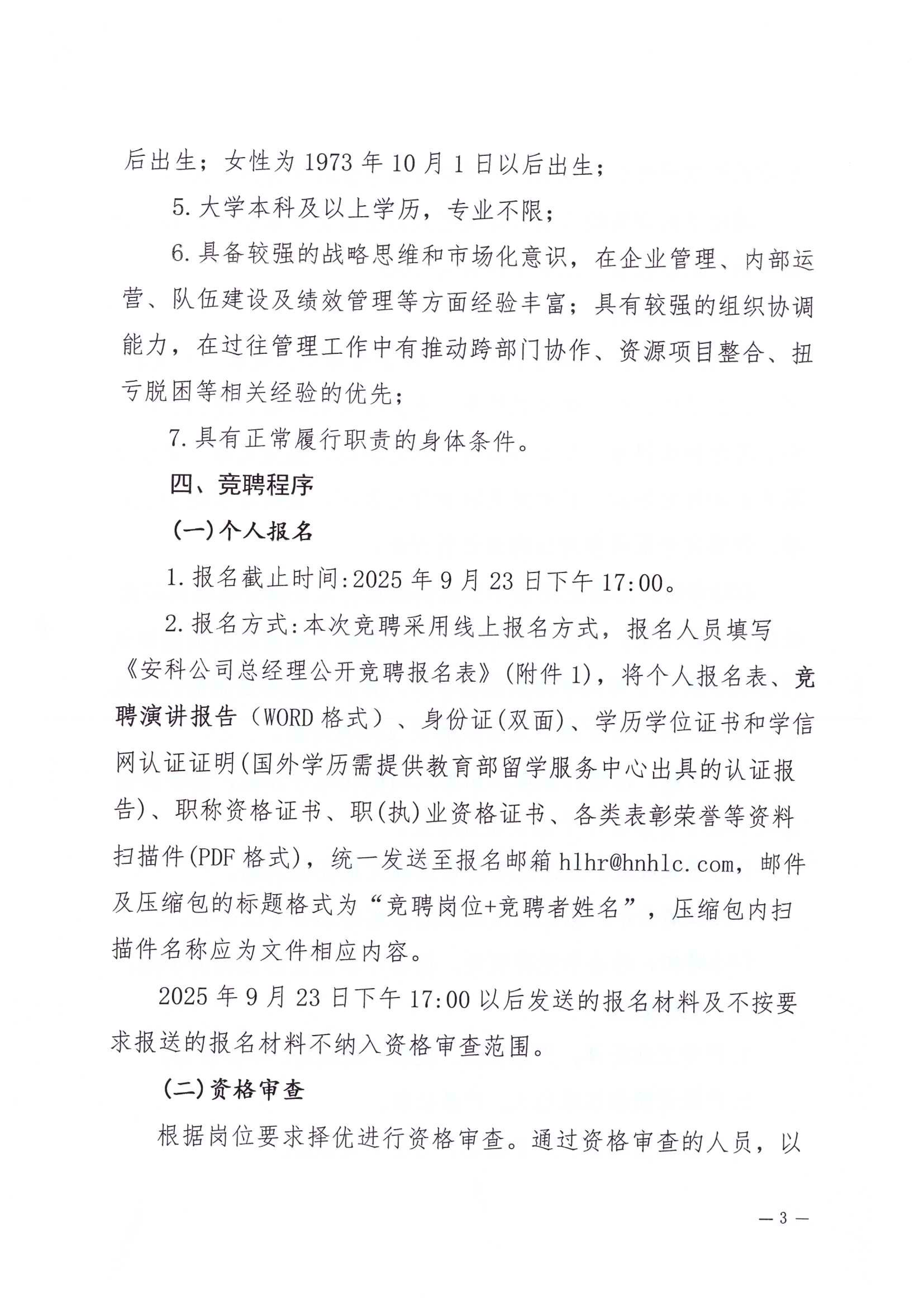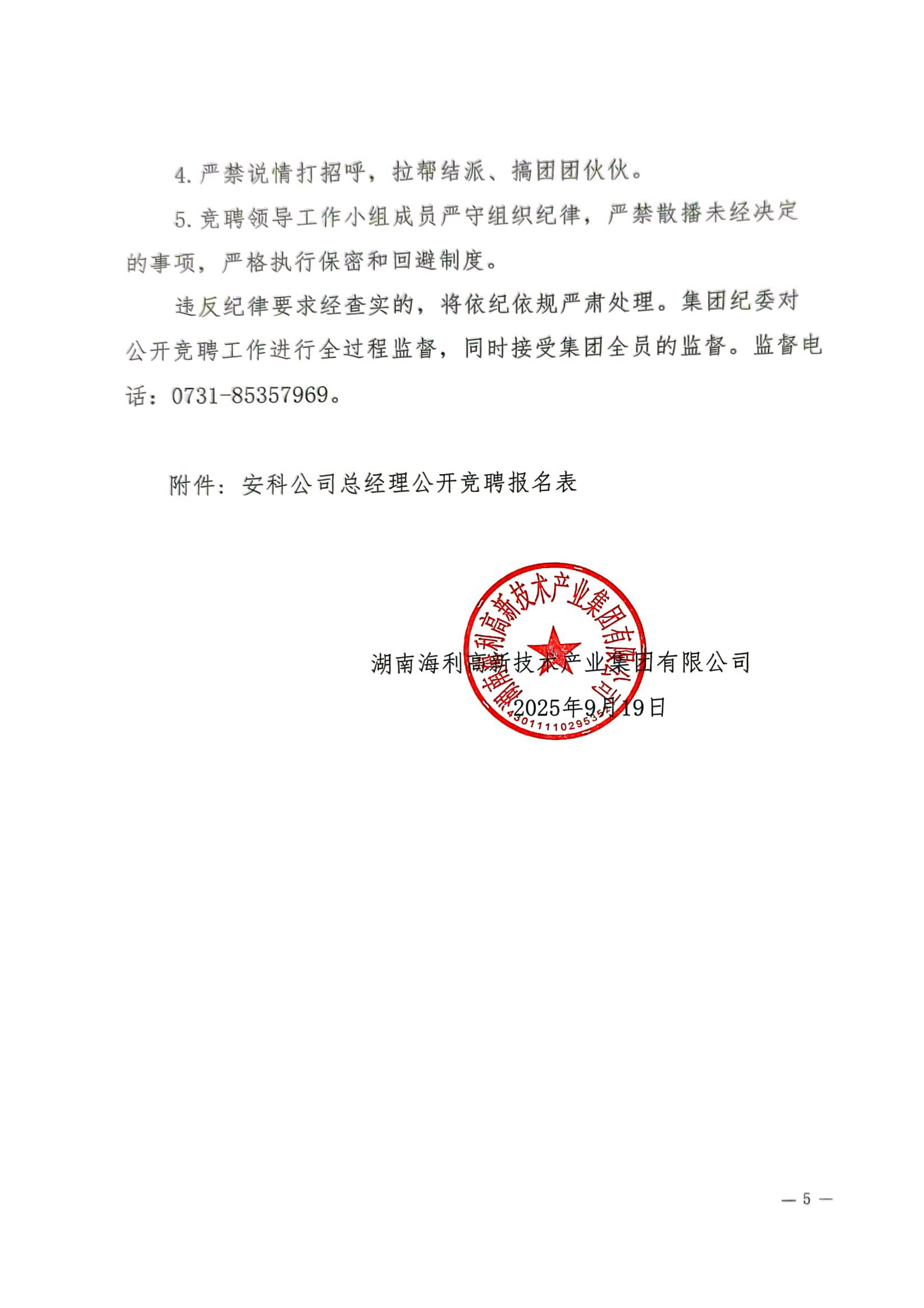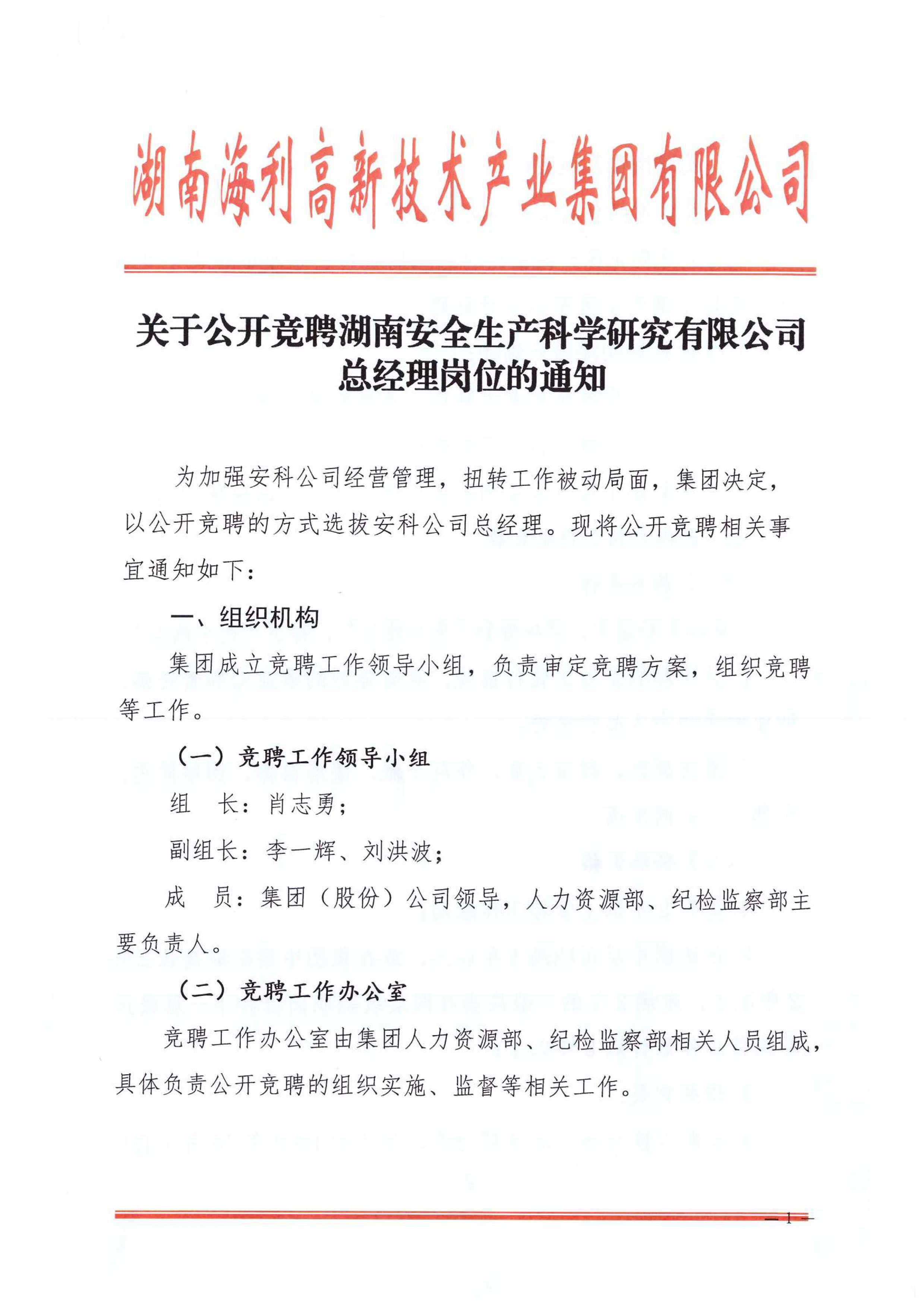 关于公开竞聘湖南安全生产科学研究有限公司总经理岗位的通知